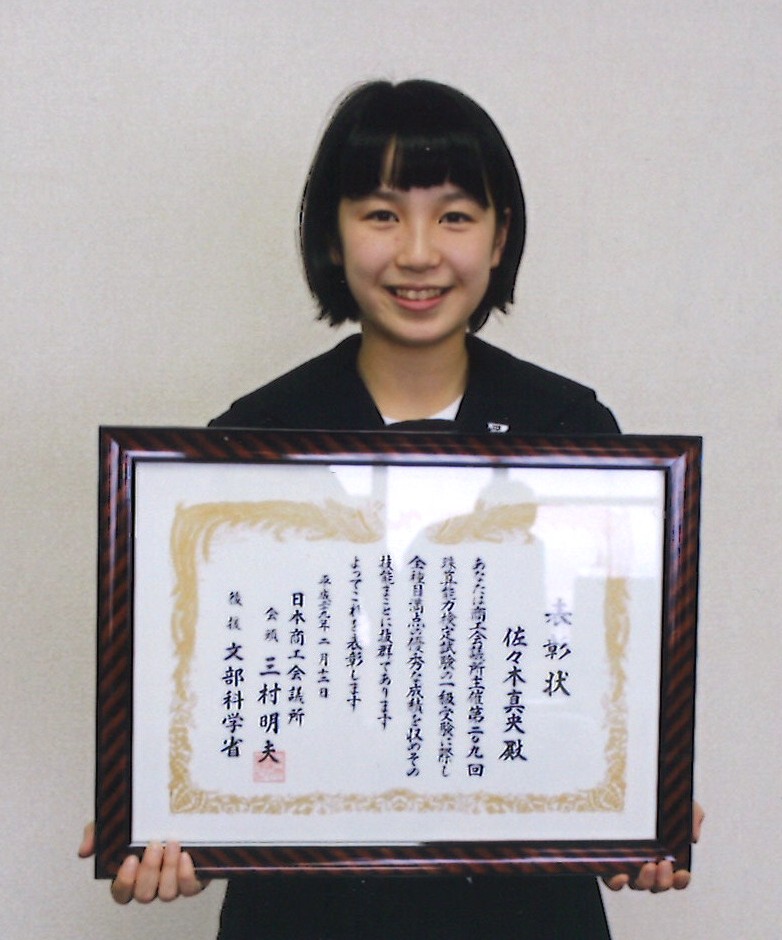 もう一人の佐々木真央さんは、水沢教室所属の中学一年生(現在は二年)ですが、小学六年生の時に1級には合格しており、今回四度目の挑戦にて見事満点合格となりました。