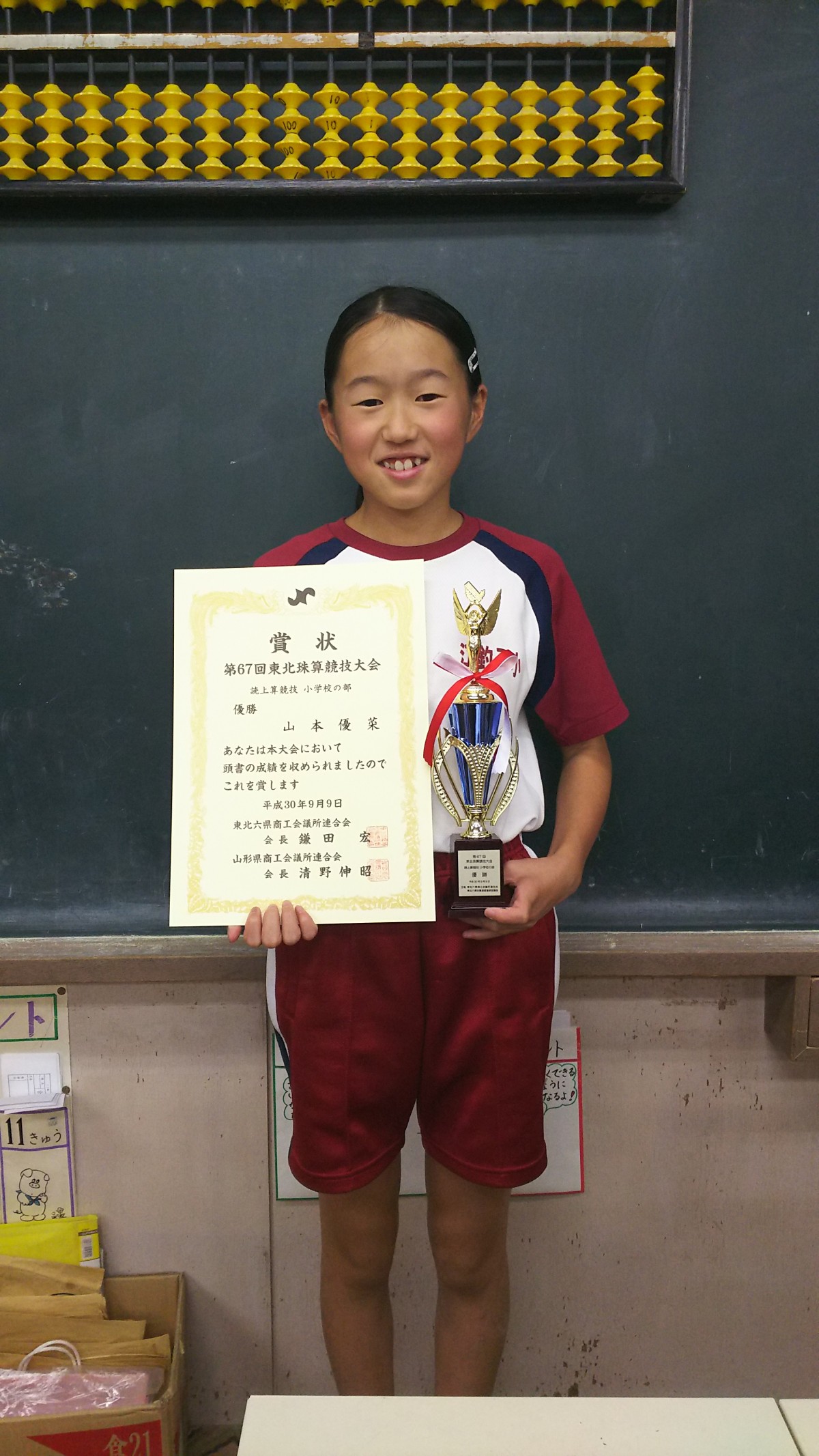 江釣子本校の山本優菜(小6)さんは、読上算競技・小学校の部において見事優勝いたしました!!