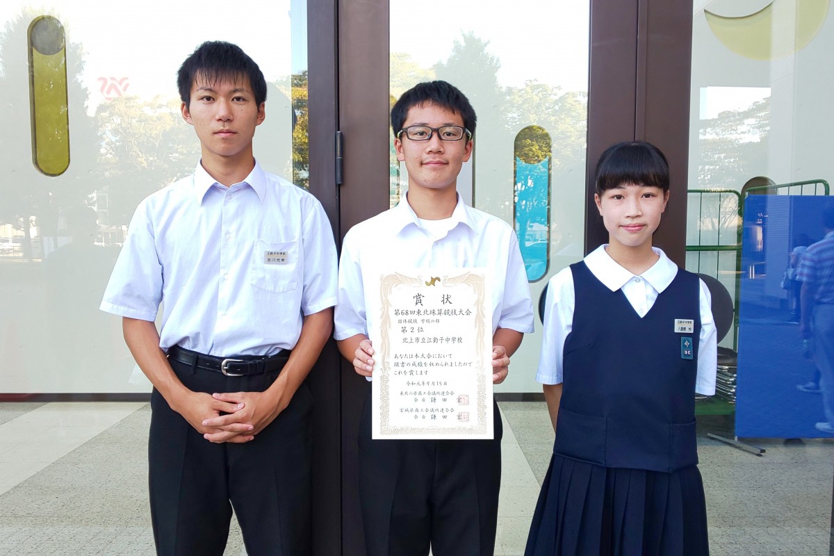 <学校の部> 第二位 北上市江釣子中学校( 小林拓史くん・吉川光希くん・八重樫怜さん )