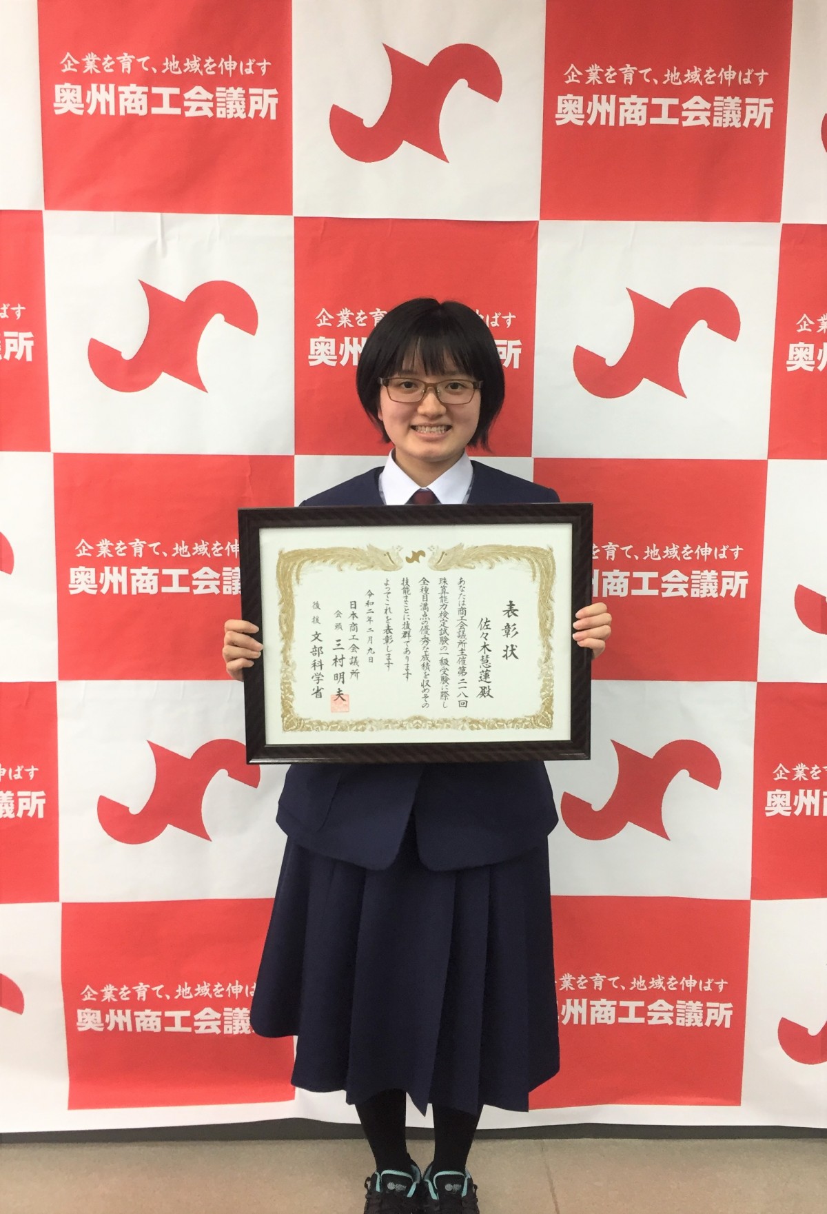 令和2年2月に行われた全国各地で施行されました【日本商工会議所主催 珠算能力検定試験】に於いて、第一珠算学校から新たに1級満点合格者が2名誕生!!この度4月末に奥州商工会議所で、5月に北上商工会議所において表彰されましたので紹介させていただきます。