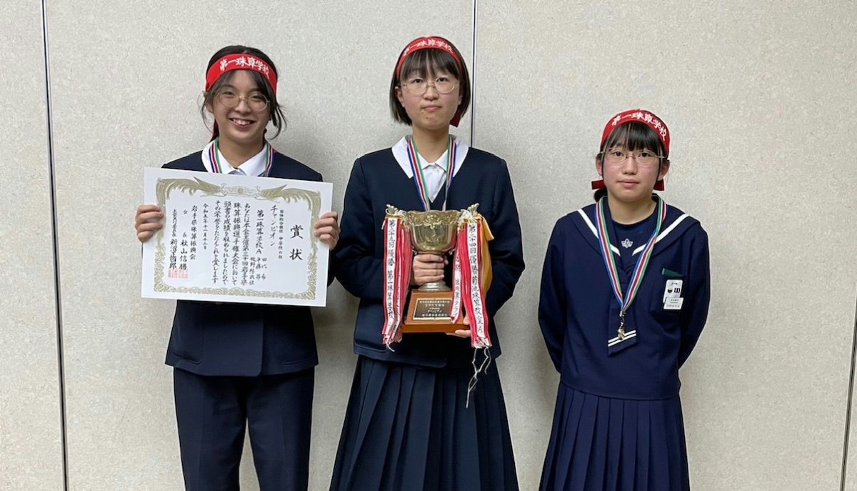 チャンピオン 第一珠算学校Aチーム(佐藤光人・吉川光希・笹井早百合)
