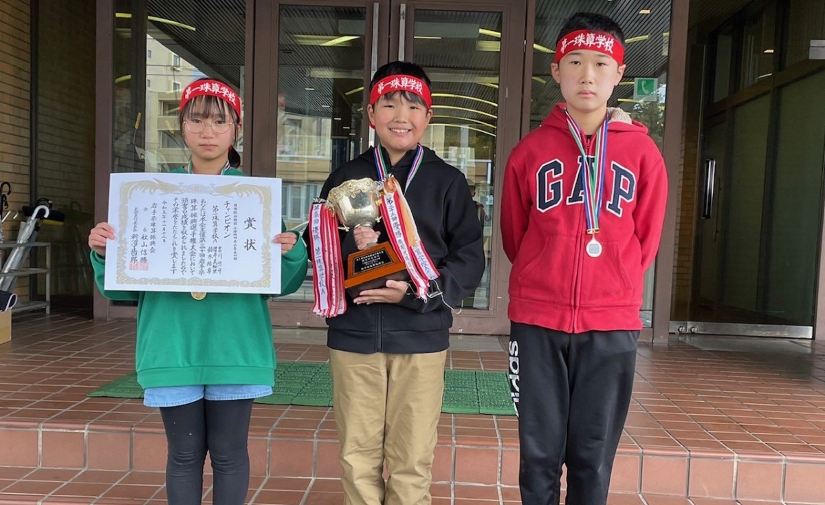 チャンピオン 第一珠算学校Aチーム(吉川悠斗・笹井美桜里・鈴木結尊)